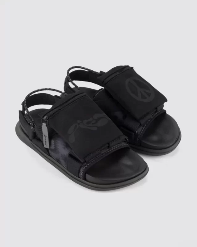 Nesse novo drop da aclamada collab entre Rider e Piet, traz a clássica silhueta renovada, com inspirações de referências da moda anos 70, toda a influência no movimento hippie e as estéticas derivadas dessa época, revividas nos anos 90 a estética vintage, o produto vem uma composição multicolor, brincando com as expressões de cores e misturas, trazendo uma combinação em tons de preto e outra em variações de azul e roxo, inspirado nos jeans. Feito de sola em PVC com 30% de pvc reciclado, palmilha em EVA biobased, cabedal em tecido e tiras têxteis.